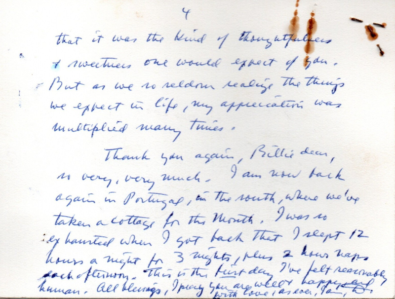 From ex-husband Douglas Fairbanks, Jr., 8/15/67 (partial---pp. 1 and 4 of 4)