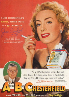 brands endorsed by Joan include Camel, Chesterfield, Lucky Strike, Old Gold,