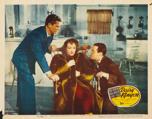 My 2007 DVD of "Daisy" is labeled as a "Fox Film Noir." It's not in any way a "film noir." (Please, modern-day marketing departments, stop!) It's pretty much a domestic melodrama, albeit a realistic one---no one among the major characters is portrayed as either good or bad; all have their flaws.