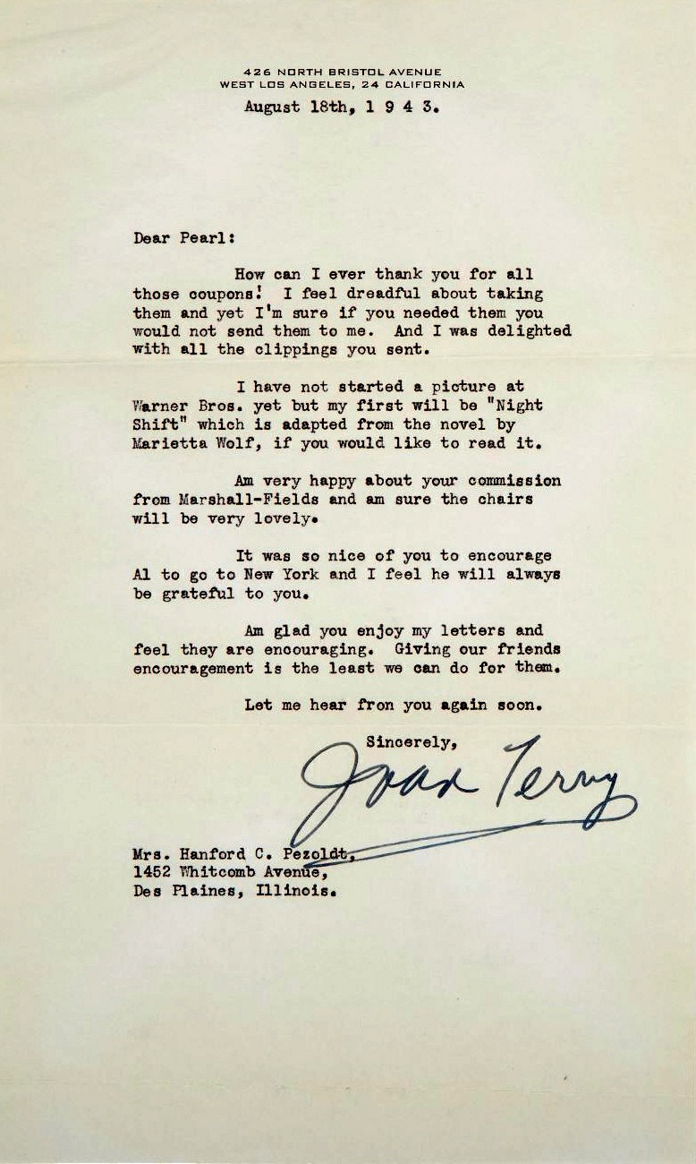 (Note: See also Joan's 1942 letters of May 6, July 3, and September 10 re this fan-club kerfuffle!)