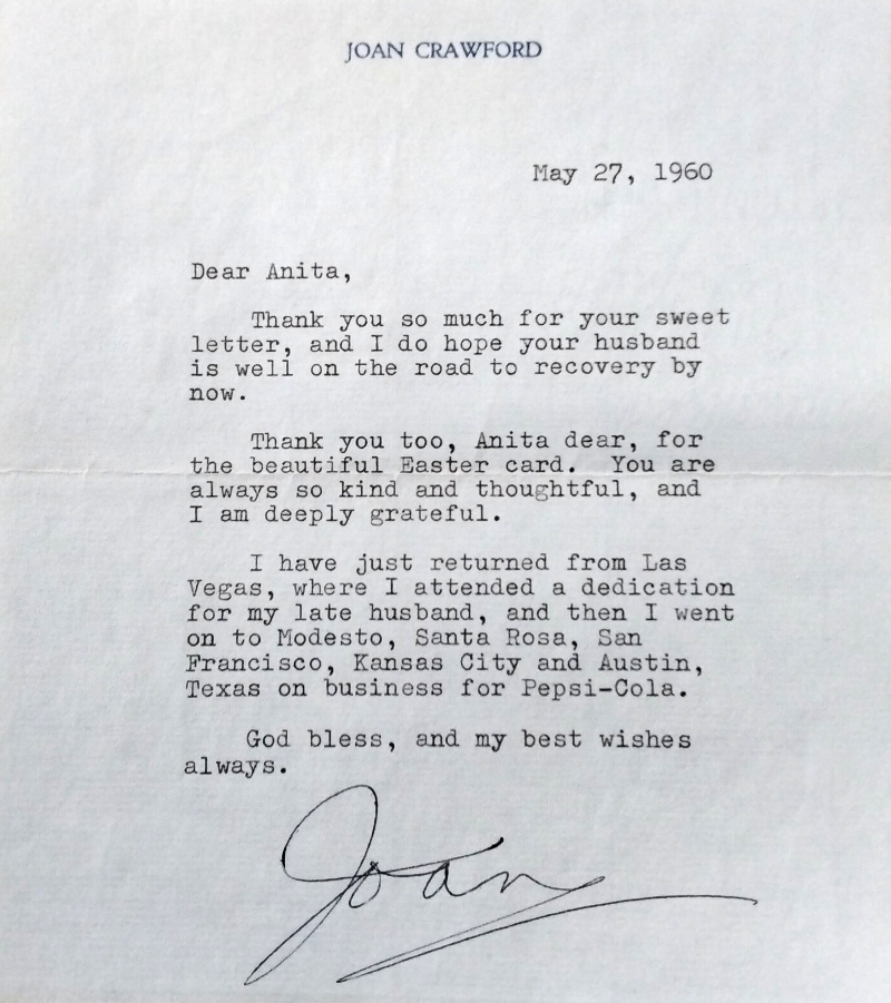 February 20, 1960, to Rene Black of Miami's Fontainebleau Hotel