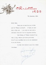 LETTERS: 1956 to "Larry" (Lawrence J. Quirk?) re article and Esther Costello filming. On Christmas stationery.