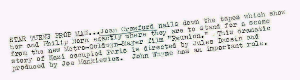 On the set of 'Reunion in France' with co-star Philip Dorn.