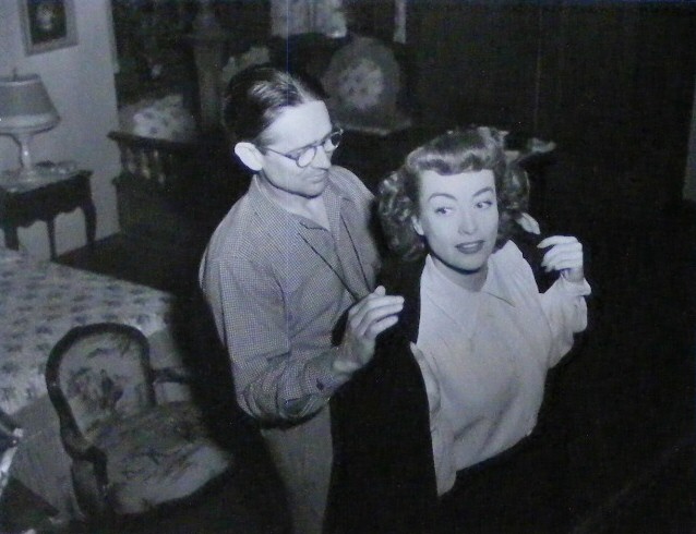 1947. On the set of 'Possessed' with cameraman Sidney Hickox.
