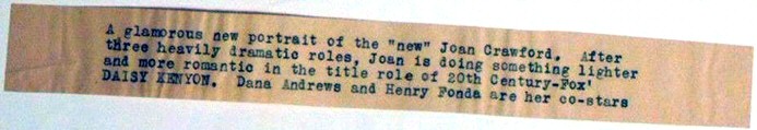 1947. Publicity for 'Daisy Kenyon' shot by Gene Kornman.