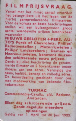 Below: Same 1933 card for Cocktail and Turmac brands.