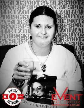 Above left: Crystal Pacey at Joan's Ferncliff crypt in 2011. Above right: Crystal at an August 2012 screening of Mildred Pierce at a Bondi theater in Australia.