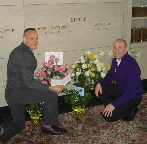 Above: Kevin and Doug bring gardenias to Joan's Ferncliff crypt on her official 100th birthday (March 23, 2008).