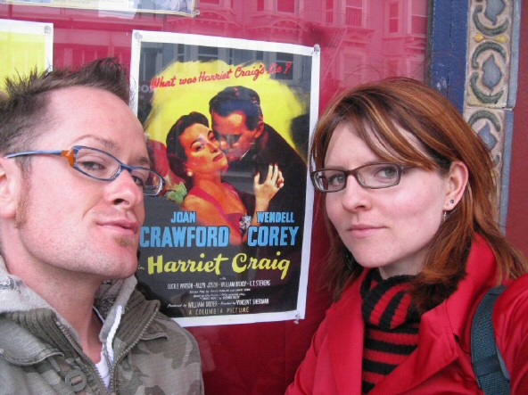 Above: Ronnie of Oakland, with friend Sarah. "We are outside of The Castro Theatre in San Francisco where we saw 'Harriet Craig'. This was taken in April 2008. We really had a good time that day and we both enjoyed the movie very much.The audience was very enthusiastic. When Joan Crawford's name appeared on the screen, everyone applauded and cheered. At the end of the film there was another applause, and all throughout the film the audience was very enthusiastic." |