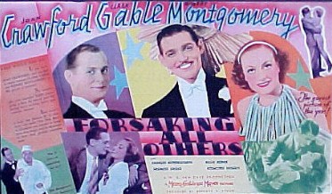 Louella Parsons in the Los Angeles Examiner January 25, 1935 Forsaking All Others may not be Joan Crawford's greatest achievement, but at least it is her best performance since she became screen conscious. In many ways it's the Joan who used to delight us with her naturalness, her young beauty and her merry quips. I liked the comedy, and from the laughter that greeted some of the dialogue the patrons of Loew's State apparently agreed with me. Forsaking All Others is also playing at Grauman's Chinese. Light, frothy, amusing, it's the