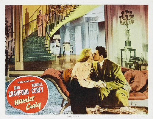 Cast: Joan Crawford as "Harriet Craig," Wendell Corey, Lucille Watson, Allyn Joslyn, William Bishop, K.T. Stevens, Viola Roache, Rymond Greenleaf, Ellen Corby, Fiona O'Shiel, Patric Mitchell, Virginia Brissac, Katherine Warren, Douglas Wood, Kathryn Card, Charles Evans, Mira McKinney.