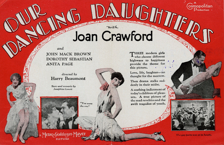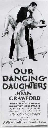 Notes: • This was Joan's star-making role. After the film's release, box office grosses for Loew's theaters soared, as did the volume of fan-mail for Joan (as did her salary). (Ultimate Star) • The film was based on the story "The Dancing Girl," which originally was serialized in Hearst newspapers. (US) • Titles considered for the film: Dancing Girl, These Modern Girls, Dancing Daughters, and These Naughty Times. On April 16, 1928, the title Our Dancing Daughters was finalized. (US) • In surveys taken by the Payne Fund from 1919 to 1933 to gauge the influence of films on teenagers, this film was the one most often cited by teens. (US)