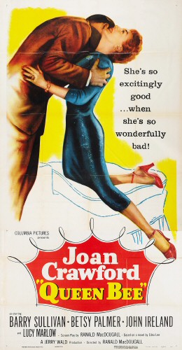 Paul Mavis on DVDtalk.com (2013): Crawford's performance here in Queen Bee is one of her best. Most critics remark on Crawford's capacity here to starkly delineate complete, vile, manipulative evilness in her Eva, which is quite true. However, they frequently fail to mention Crawford's careful attention to showing how Eva has been hurt by her victims. As in her other "monster" roles, Crawford, quite brilliantly, is able to somehow make us feel, if certainly not "forgiveness," then at least "pity," in this case for Eva, despite the terrible things she does to her family. Full review with screen shots.