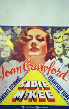 VHS release: 12/5/90. DVD release: 2/12/08 as part of the Joan Crawford Collection, Vol. 2 3/3/17 on demand from Warner Archive Collection Blu-ray release: 3/25/25 Cast: Joan Crawford (as "Sadie McKee"), Gene Raymond, Franchot Tone, Edward Arnold, Esther Ralston, Earl Oxford, Jean Dixon, Leo Carrillo, Akim Tamiroff, Zelda Sears, Helen Ware, Helen Freeman, Leo G. Carroll. Cafe entertainers: Gene Austin, Candy, and Coco. Credits: Based on the 1933 story "Pretty Sadie McKee" by Vina Delmar, which originally appeared in "Liberty" magazine. Screenplay: John Meehan. Producer: Lawrence Weingarten. Director: Clarence Brown. Camera: Oliver T. Marsh. Costumes: Adrian. Editor: Hugh Wynn. Sound: Douglas Shearer.