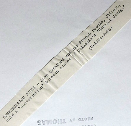 1950. On the set of 'Harriet Craig' with Cliquot.