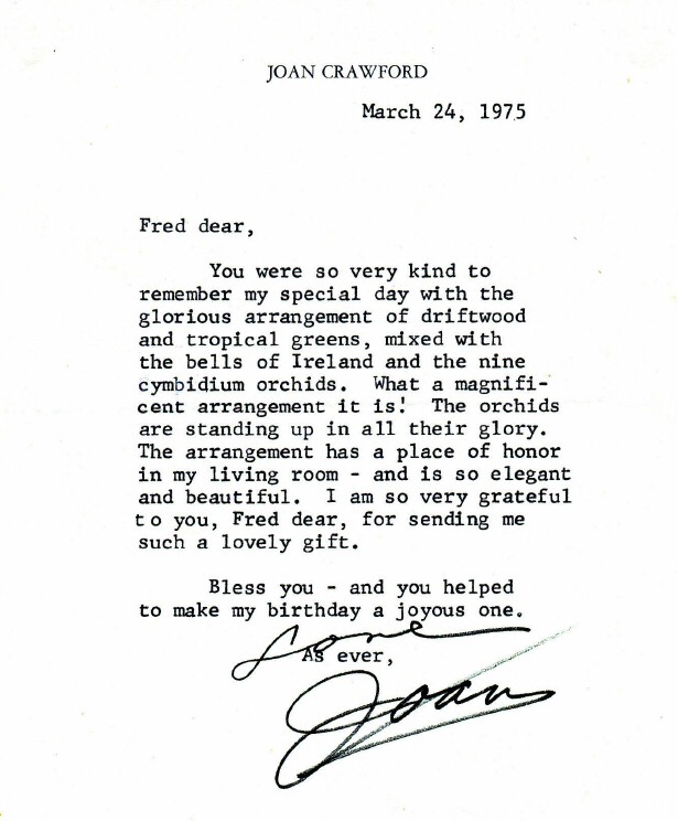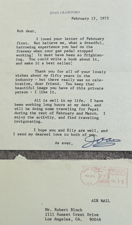 April 3, 1975, to Irvin Gelb from Joan's secretary Vivian Zeiger