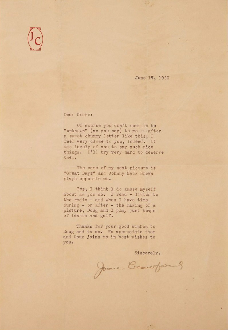 [According to researcher Gary Olszewski, this letter might be to actress Marjorie White, who appeared with Joan in 1931's Possessed.)