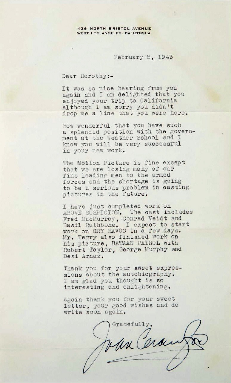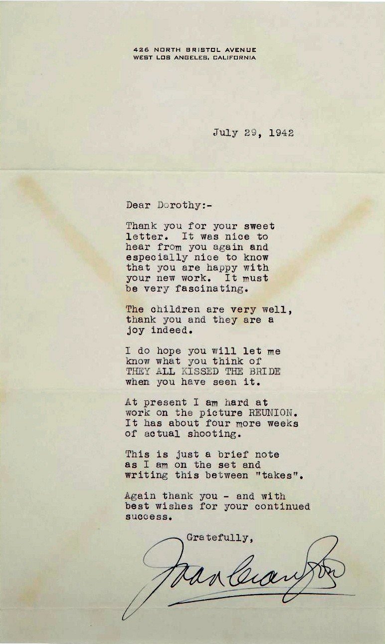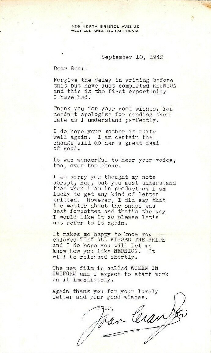 (Note: See also Joan's 1942 letters of May 6, July 3, and September 10 re this fan-club kerfuffle!)