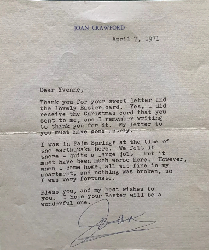 August 11, 1971, to longtime fan/friend Bea Margolin and husband Moe