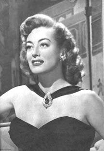 She would like to do a play but is frightened of the theater. She is also scared of the microphone and makes very few radio appearances. When she memorizes a part for a movie she is what is known as a "photographic study." She reads a page of dialogue, which is to be filmed, several times and retains a picture of it. This is the best she can do. That is why she is afraid of the theater, where she must know the entire play for a performance. She takes at least four showers a day, starting when she arises in the morning. After breakfast she takes another shower. Then another before dinner. And still another before going to bed. This is the routine. But if she has nothing to do, she takes another shower. She is a gracious person and hostess. Once, at a party at her house, Roland Young and Sir Cedric Hardwicke were approached by the butler and asked if they wished anything. These actors decided to have some fun. Roland Young said, "I would like a mink coat. It's a bit chilly in the garden." Sir Cedric said, "And I will have an old silver fox." They were both given what they desired. She can go along with a gag. She is proud of the work she did in Daisy Kenyon and found it a stimulating change from her rather grim roles in Humoresque and Possessed. She particularly liked the idea of winding up on a happy note instead of walking into the ocean or finding herself in a mental institution. She sleeps on a sleeping porch in a huge four-poster bed. She usually reads in bed, sleeps in a short nightgown with long sleeves. She is a movie actress always, and she wants only to be a movie actress. PICTURE PARADE by Sara Corpening