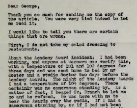 1942 and 1943 to "Dorothy" (the same long-time fan from the 1935 letter of 2/03 below). 1943 and 1945 to long-time fan "Pearl." 1949: 3-page to journalist George Frazier, refuting numerous points from an article he'd written about her. (Starting with: "I do not take my salad dressing to restaurants.") 1949: 2-page to journalist Leonard Lyons, seeking a hook-up with Senator Hubert Humphrey (!!---I think she's kidding!). :)