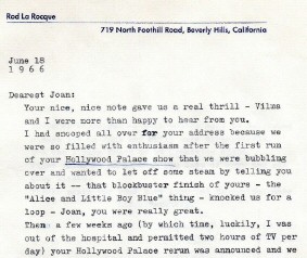 CELEB LETTERS TO JOAN: 1966 from Henry Fonda.