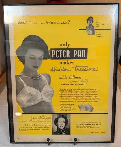 Week 7 gift (2/03): 1951 ad for Peter Pan bras (in 11 x 14 plastic frame) Winner: Congrats to Sandi L. of California!