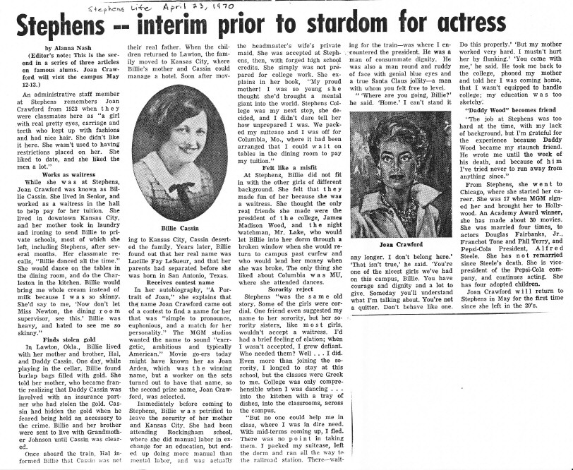 Below are two articles about Joan (1929 and 1970) from Stephens College publications. (Joan was a student at the Columbia, Missouri, school in 1922-23.)