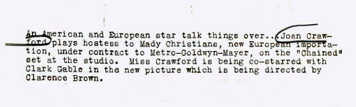 1934. On the set of 'Chained' with Austrian actress Mady Christians.