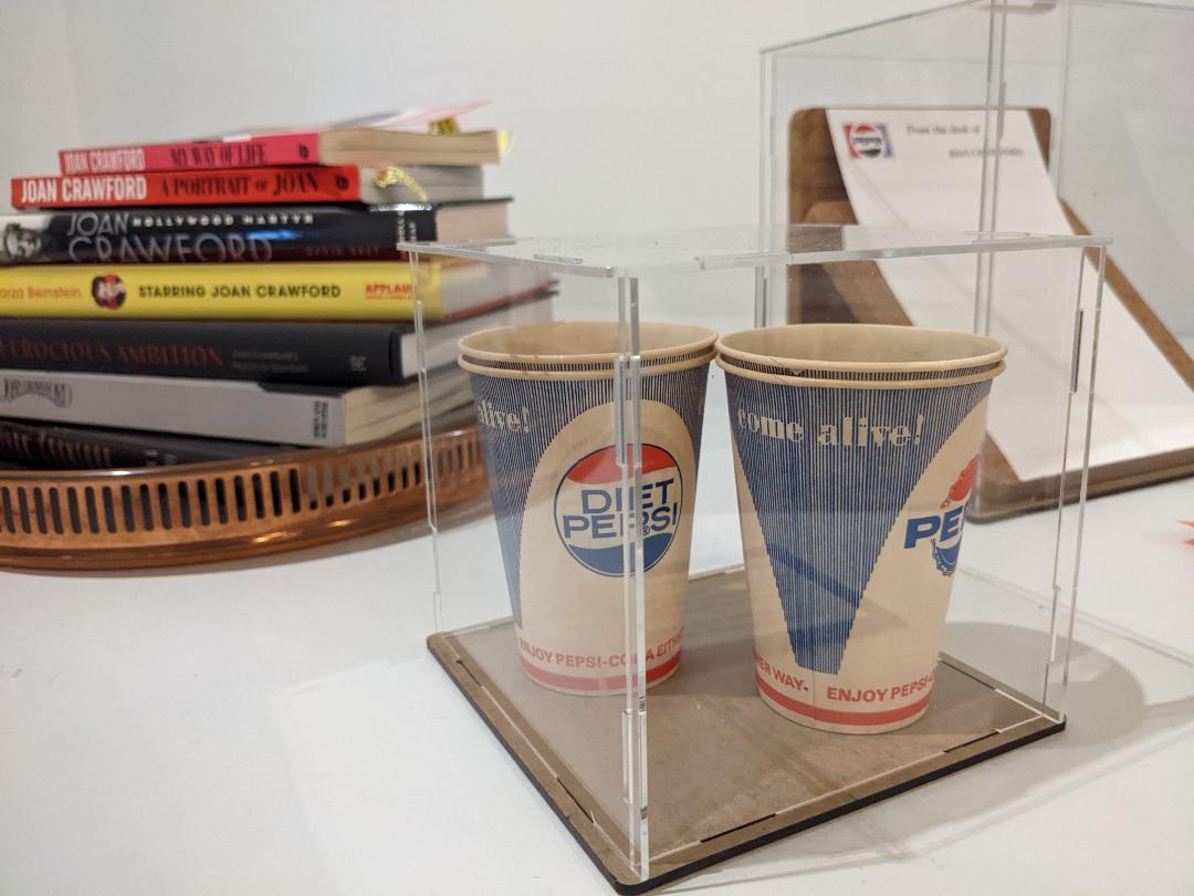 Below: Shots of the Joan memorabilia exhibit in the lobby just outside the entrance to theater seating.
