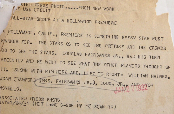 1931 at Hollywood premiere with William Haines, husband Doug Jr, and Ivor Novello.