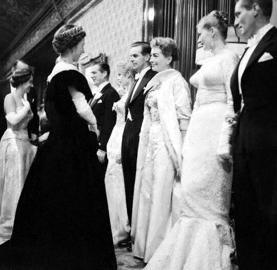 October 29, 1956. Being presented to Queen Elizabeth II at the Royal Film Performance.     October 29, 1956. Being presented to Queen Elizabeth II.