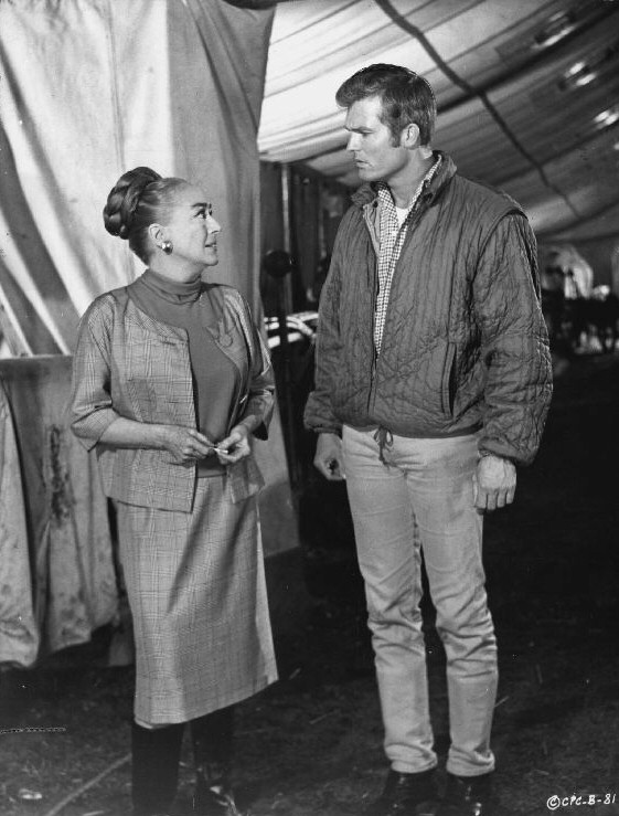 1968. On the set of 'Berserk!' with Ty Hardin.