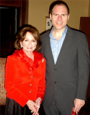 At left is a shot I took of Blyth from the stairs as I waited to greet her. At right is a photo of David Cerda with Blyth.