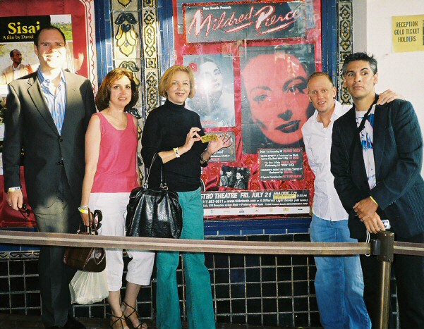 Above: Outside the Castro Theatre before the show, posing in the "VIP line." From left: Des, Donna, me, Jon M, David.