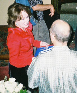 At left: A big hello to Nolan and dad, who flew in from Oklahoma! Nolan was behind me in the line to meet Ms. Blyth and tapped me on the shoulder: "What's your name?" Suspicious me looked startled: "Um...Stephanie. Why??" Turned out he was a regular reader of this site and knew me from my pictures! Check out that Pepsi-Cola belt buckle, which I didn't notice at the time!