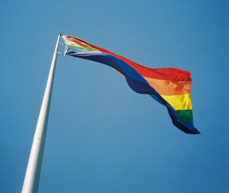 the Pride flag flying from the Harvey Milk plaza in the Castro district.