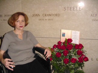 Below are photos from my visit to Joan's crypt this Thursday. (Many thanks to my roommate for driving me to Hartsdale and for wrangling a wheelchair for me from our building's doorman! I've been unable to walk for the past week due to...cat-bites (!)...and there's no way I could have gotten out there on my own. So, thanks to "Baby Jane" from "Blanche"!) :)