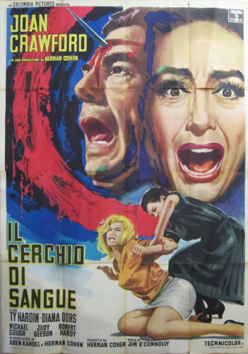 VHS release: 8/11/93. DVD release: 9/6/11. Blu-ray release (part of "Psycho Biddy Double Feature" with Strait-Jacket): 9/25/18. Cast: Joan Crawford (as "Monica Rivers"), Ty Hardin, Diana Dors, Michael Gough, Judy Geeson, Robert Hardy, Geoffrey Keen, Sydney Tafler, George Claydon, Philip Madoc, Ambrostine Phillpotts, Thomas Cimarro, Peter Burton, Golda Casimir, Ted Lune, Milton Reid, Marianne Stone, Miki Iveria, Howard Goorney, Reginald Marsh, Bryan Pringle. Credits: Original story and screenplay: Aben Kandel and Herman Cohen. Producer: Herman Cohen. Director: Jim O'Connolly. Associate Producer: Robert Sterne. Director of Photography: Desmond Dickinson. Art Director: Maurice Pelling. Costumes: Jay Hutchinson Scott. Wardrobe: Joyce Stoneman. Music: John Scott. Film editor: Raymond Poulton.