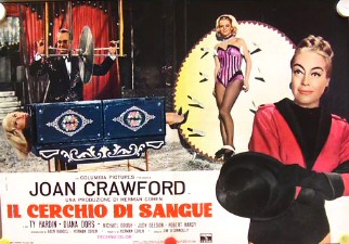 Plot Summary: One of the lower points of Joan Crawford's latter-day career curve (though nothing to compare with the later embarrassment of Trog!), this lurid, low-rent thriller nevertheless gives Crawford the opportunity to chew acres of scenery in a campy Marlene Dietrich-style get-up. She portrays the ringmaster of a cheesy traveling circus troupe whose stars are being whacked in a variety of flamboyant ways (many of which are depicted in the garish trailer, particularly Michael Gough's spike-in-the-head scene). Despite the exploitation potential in this lurid Grand Guignol scenario, this film is fairly light on scares or gore -- and far too heavy on circus stock footage. A sequel of sorts to producer Herman Cohen's Horrors of the Black Museum, this one is a slight improvement, thanks to Crawford's outrageous, over-the-top performance. ~ Cavett Binion, All Movie Guide