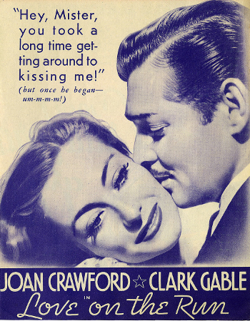 Aw, but who cares about copy-cats when you get to see Gable in the same role, this time with Joan (in their 7th of 8 films together), in a continuation of '30s romantic comedies co-starring the duo that included Dancing Lady ('33), Chained ('34), and Forsaking All Others ('34). 1936's Love on the Run is simple, satisfying comfort food for the masses, myself included.