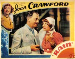 Paul (June 2005) I must admit that this was a film that I'd been curious to see for quite a long time, simply because it is widely regarded as Joan Crawford's first flop. I put the DVD in and then made myself watch it with a completely blank and objective viewpoint. Personally, given the roles that she had portrayed up until that time she does a remarkable job and it is a remarkable movie when you take into account that it was made in 1932. Although I'm not sure, I would guess that this film was made before the Hays code went into effect, as RAIN does not have a traditional happy ending and it shows the underlying hypocrisy of fervent religious zealots. That was pretty racy territory for the time. In fact, the innkeeper who spent his nights reading and quoting Nietzsche was a brilliant touch. I highly recommend this movie. |