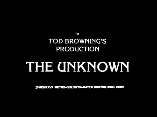 Mordaunt Hall in the New York Times (June 13, 1927) The Armless Wonder Although it has strength and undoubtedly sustains the interest, "The Unknown," the latest screen contribution from Tod Browning and Lon Chaney, is anything but a pleasant story. It is gruesome and at times shocking, and the principal character deteriorates from a more or less sympathetic individual to an arch-fiend. The narrative is a sort of mixture of Balzac and Guy de Maupassant with a faint suggestion of O. Henry plus Mr. Browning's colorful side-show background. The rôle of Alonzo, who poses as the Armless Wonder with a Spanish circus, is one that ought to have satisfied Mr. Chaney's penchant for freakish characterizations, for here he not only has to go about for hours with his arms strapped to his body, but when he rests behind bolted doors, one perceives that he has on his left hand a double thumb. Mr. Chaney really gives a marvelous idea of the Armless Wonder, for to act in this film he has learned to use his feet as hands when eating, drinking and smoking. He even scratches his head with his toe when meditating. This tale is prefaced as if it were a circus legend, and soon one realizes that Alonzo is not only expert in the use of his feet when serving himself, but he is also supposed to be a crack shot and an unerring knife thrower. The girl who risks her life daily before Alonzo's bullets and knives is Estrellita, impersonated by Joan Crawford. She becomes interested in Alonzo because most men in the circus without provocation invariably want to caress her. Estrellita even recoils from the attentions of Malabar, the handsome young strong man, whom Alonzo soon regards as his romantic rival. The only man with the show who knows Alonzo's secret is Cojo, who unlaces Alonzo's leather jacket when the knife-thrower goes to his little cabin. Alonzo's reason for posing as the Armless Wonder is because he is wanted by the police, and as he happens to have a weird double thumb on one hand, he thinks the only way to avoid capture is to appear without arms. In one episode Alonzo is mercilessly beaten by the circus manager, and that night the manager is throttled by a man with a double thumb. Estrellita sees a flash of the deformity from her window, not knowing, of course, that the strangler was Alonzo. Hence, Alonzo realizes that if Estrellita ever discovers that he has a double thumb, not only will his chances of winning her be lost, but he will also stand in danger of being apprehended for murder. In one very clever scene Alonzo is perceived sitting in his cabin with his arms free. He is, nevertheless, using his toes to pour out wine to drink and to hold a cigarette. Cojo calls Alonzo's attention to the fact that Alonzo is so accustomed to using his feet that he has forgotten that his arms are not strapped to his body. Alonzo has an idea of his own. He is trying to find out whether he could not do without arms. Not long afterward Alonzo insists that a surgeon amputate both arms, and some time later he finds Estrellita. Malabar, the man of strong arms, has won the affections of the girl and she is his wife. Alonzo's nature changes, but his plot to cause Malabar's death fails. Miss Crawford is not only beautiful but she gives a most competent performance as Estrellita. Norman Kerry is splendid as the strong man. THE UNKNOWN, with Lon Chaney, Norman Kerry, Joan Crawford, Nick de Ruiz, John George and Frank Lanning, based on a special story by Tod Browning, directed by Mr. Browning; overture, "Second Hungarian Rhapsody"; "The Pirate's Frolic," with Richard Hale, baritone, and Capitol ensemble; "A Holiday in Sweden," a scenic; "The Newlyweds' Surprise," a comedy. At the Capitol Theatre.