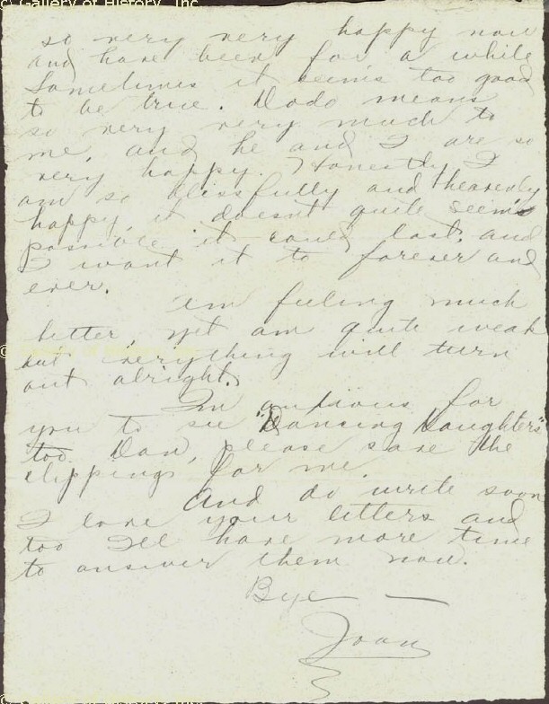 P.S. Dan, Joan's friends are dear to her, she speaks of you incessantly and if you don't mind will you be my friend and allow me the honour and pleasure of yours being yours? In anticipation. "Doug" Fairbanks Jr. |