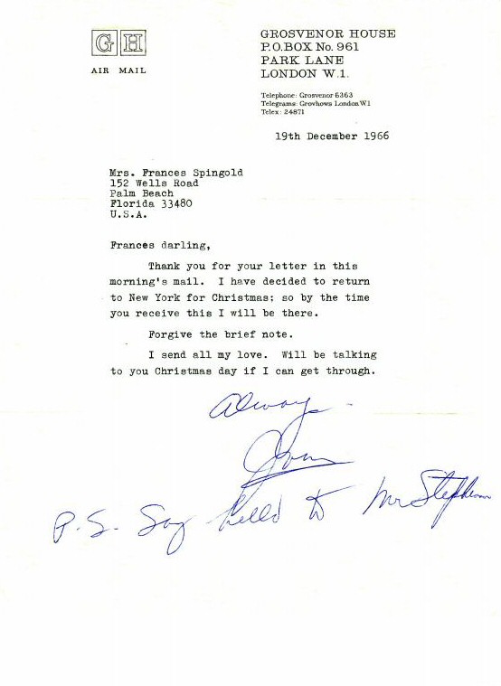Christmas 1966 to Frances Spingold