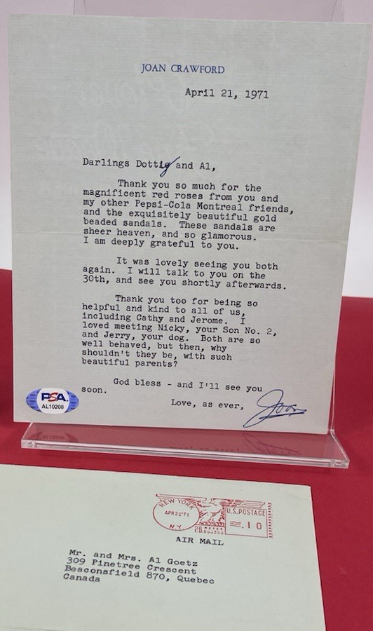 August 11, 1971, to longtime fan/friend Bea Margolin and husband Moe